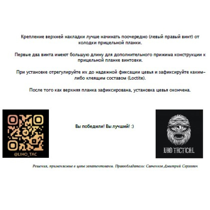 Накладки совместимы со всеми цевьями бренда Лихо Тактика и Тактические Идеи, а так же с цевьями, тол..