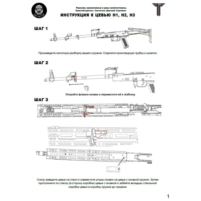 Цевье крепится на посадочное устройство, которое фиксируется на оружии за вкладыш в ствольную коробку и за оковку.