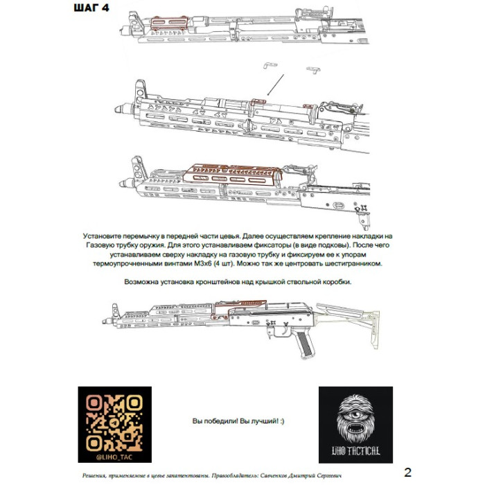 Цевье может быть установлено на следующие изделия: Автомат Калашникова моделей АКМ, АК-74, АК-74М, АК-100 серии, АК-200 серии, а так же гражданские карабины выполненные на базе АК.
