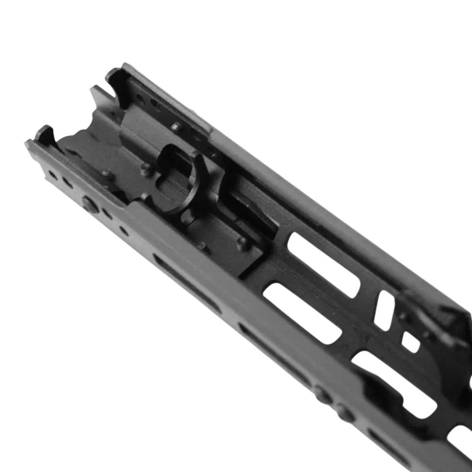 - Усиленный дополнительными силовыми линиями профиль цевья исключает боковое скручивание и позволяет жестко размещать навесное оборудование.