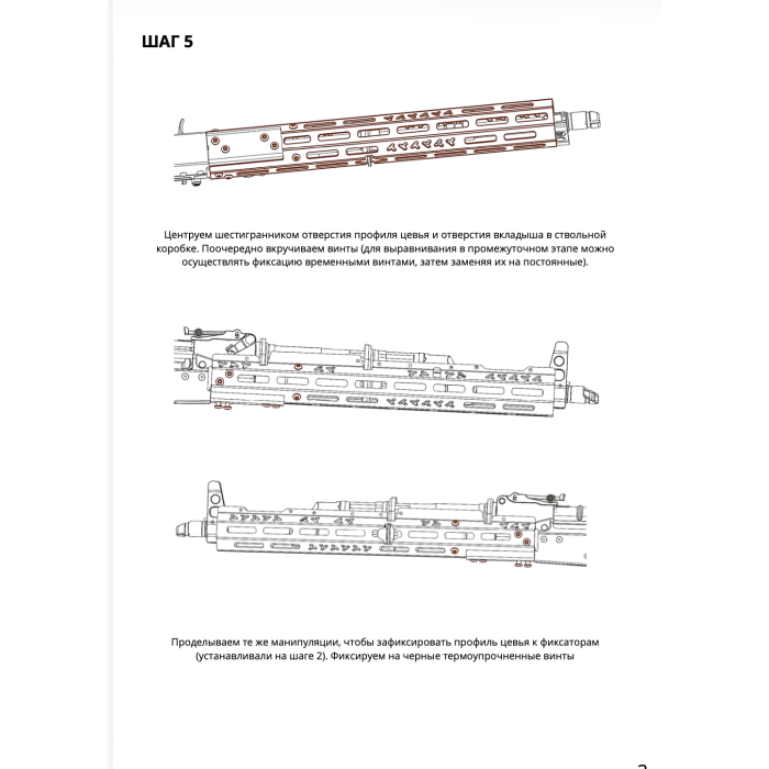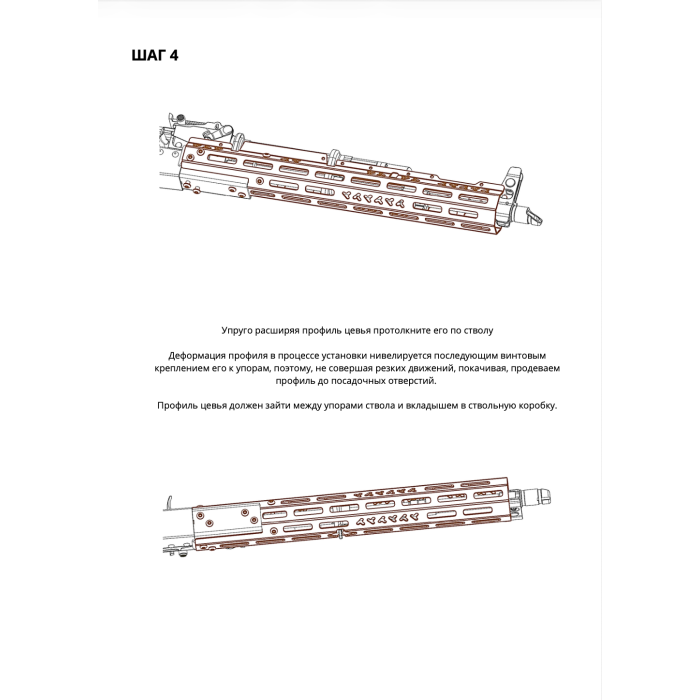 - Усиленный дополнительными силовыми линиями профиль цевья исключает боковое скручивание и позволяет жестко размещать навесное оборудование.